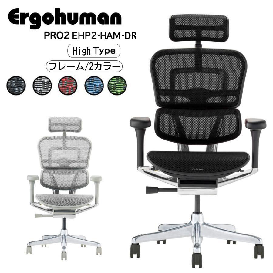 特典付き!【新基盤搭載モデル】エルゴヒューマン プロ EHP2-HAM-DR Ergohuman Pro2 オフィスチェア ヘッドレスト ハイタイプ キャスター付 肘付 リクライニング