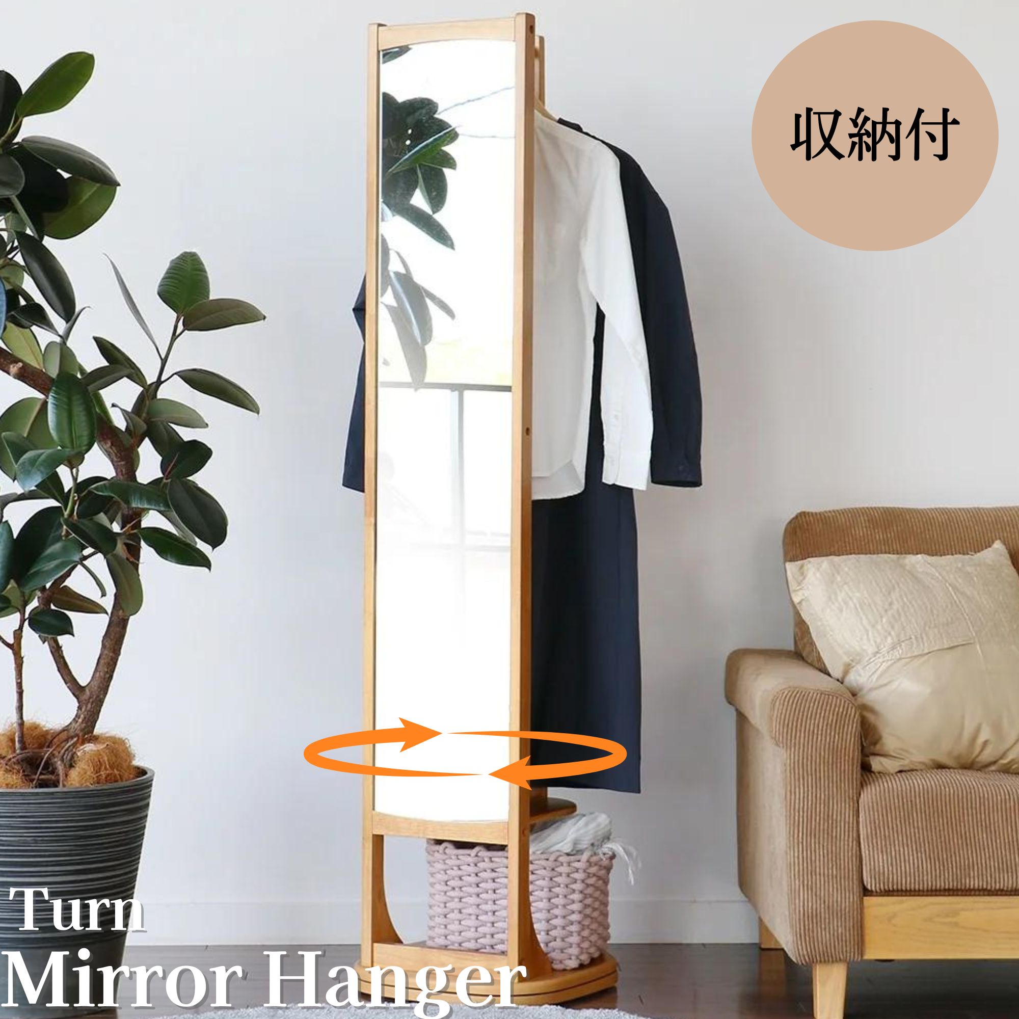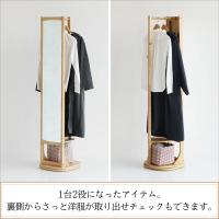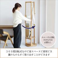 回転式スタンドミラー ハンガーラック 鏡 全身 姿見 収納 木製 ナチュラル 回転ミラー 40 160 360° 洋服掛け 玄関 シンプル ILM-3683 NA Turn Mirror Hanger