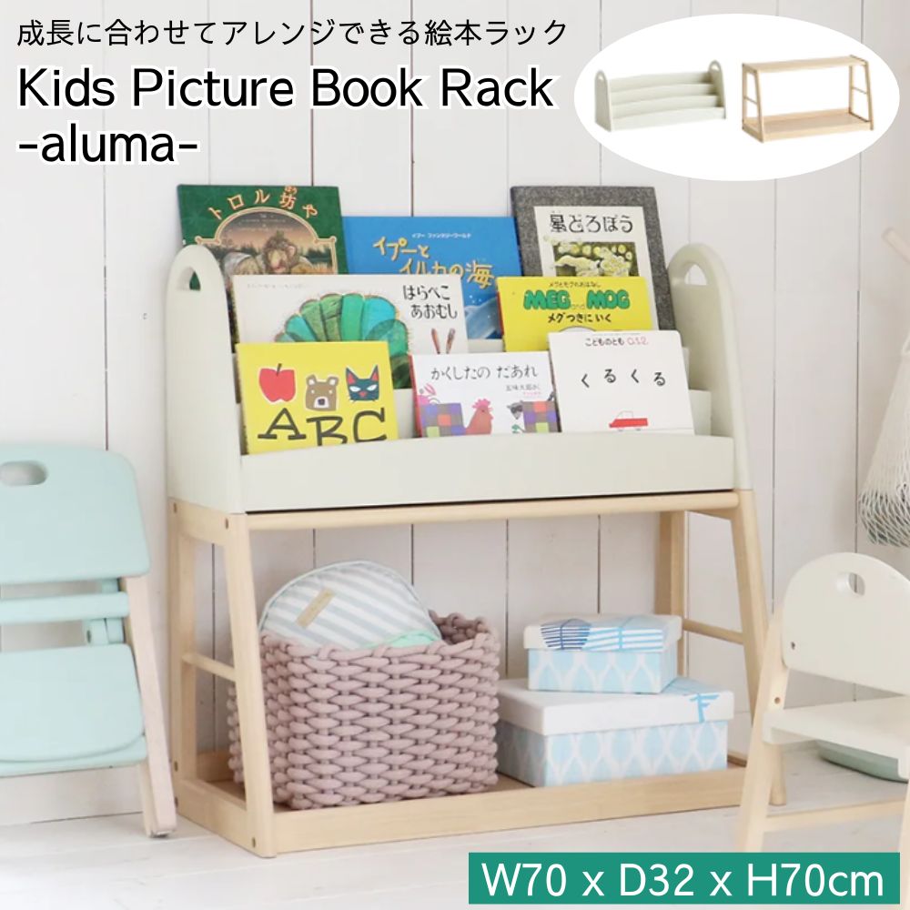 絵本ラック 絵本棚 本棚 ILR-3684 aluma マガジンラック ブックラック 収納 ロータイプ 省スペース コンパクト 子供 赤ちゃん 収納家具 天然木 市場 Marche