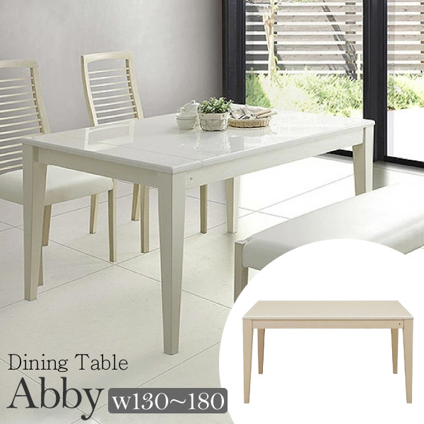 伸長式 ダイニングテーブル 幅130 150 160 180cm 伸張式 調整 ダイニングテーブルのみ ホワイト 白 鏡面 シンプル UV塗装 テーブルのみ アビー