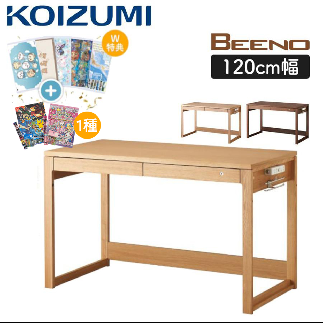 特典付き コイズミ 学習デスク 学習机 ビーノ BEENO 幅120cm BDD-073 NS ナチュラル BDD-173 WT ウォールナット BDD-103 MO 勉強机 シンプル 子供 平机 ワイド