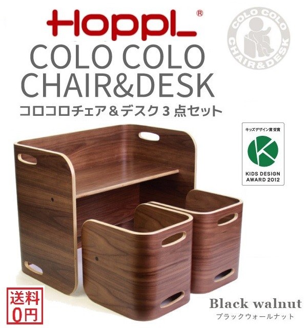 ホップル HOPPL COLOCOLO CHAIR&DESK コロコロ チェア&デスク 3点セット ブラックウォールナット キッズデザイン賞 万能 キッズデスク チェア 完成品