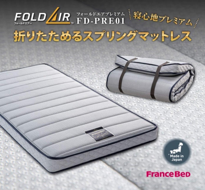 フランスベッド マットレス 薄型 フォールドエアープレミアム FD-PRE01 France Bed 通気性 日本製 折りたたみ 片面仕様 高密度連続スプリング シングル FOLDAIR