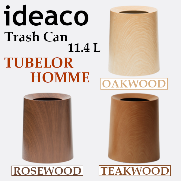 ゴミ箱 ダストボックス 11.4L 木目調 ウッド ideaco イデアコ おしゃれ トラッシュカン チューブラー オム Trash can TUBELOR HOMME ごみ袋が見えない 丸型