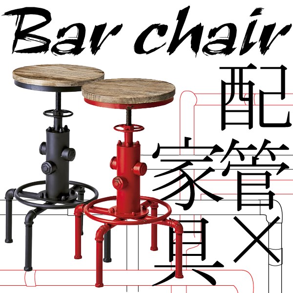 バーチェア カウンターチェア スツール KNC-A812 座面回転 昇降式 高さ調整 木製 椅子 イス いす ヴィンテージ ダメージ加工 インダストリアル 配水管 スチール
