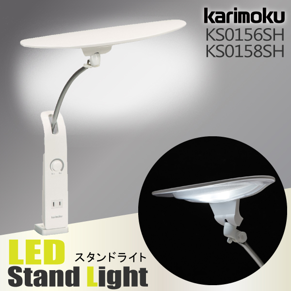 カリモク家具 KS0156 KS0158 KS0156SH KS0158SH LED スタンドライト クランプ式 ホワイト 白 学習机用 コンパクト デスクライト コンセント付き 白 人気