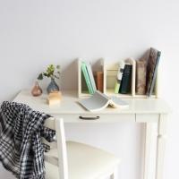 置き場所や収納する本の量によってサイズ調整が可能なナチュラルな木製ブックスタンドです。