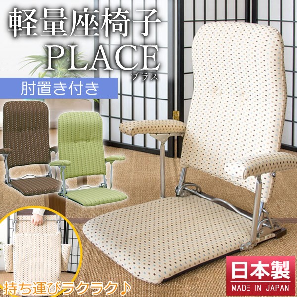 座椅子 YS-1046 肘付き 折りたたみ 座いす 和室 軽量 フロアチェア 宮武製作所 日本製 PLACE 薄型 3段階リクライニング コンパクト ハイバック オリタタミ 幅40
