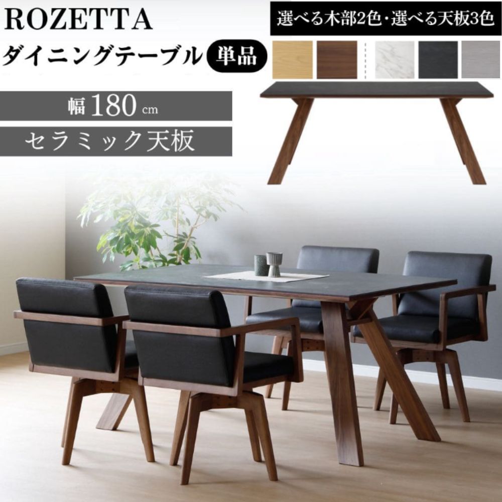 開梱設置付 ダイニングテーブル 単品 180cm セラミック天板 4人用 4人掛け 6人用 6人掛け 食堂 食卓 机 木脚 オーク ウォールナット おしゃれ ロゼッタ ROZETTA