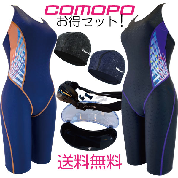 競泳 競泳水着レディース 競泳水着 ミラーゴーグル スイムキャップ お得セット comopo k4set