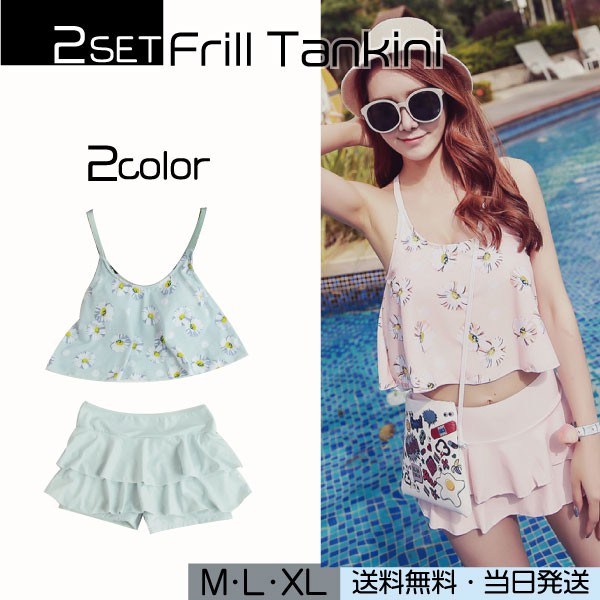 タンキニ フリル 体型カバー レディース お値打ちタンキニ 20代 30代 かわいい 花柄タンキニ