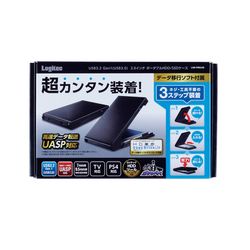 2.5インチのHDD/SSDを簡単に取り付け、パソコンでデータのやりとりを行うことができます。 カバーを開けて、HDDを入れて、閉じるだけの3ステップで、素早く装着できます。ネジや工具は不要です。 パソコンなどからのバスパワーで動作することができますので、複数のUSBポートを占有したりすることなくご使用になれます。 USB3.2 Gen1(USB3.0)対応で快適なデータのやりとりができます。またUASPにも対応しており、対応OSにおいてさらに高速な通信が行えます。 「Logitecディスクフォーマッタ」、「Logitecディスクイレイサ」、「Logitecミラーリングツール」の3種類のロジテックオリジナルツールを無償ダウンロード可能。ハードディスクをより便利にご使用いただけます。 ドライブの丸ごとコピーが行える「HD革命/Copy Drive Lite」が添付されており、ドライブの引っ越しやバックアップなども簡単に行うことができます。対応パソコン:USBポートを搭載するDOS/Vパソコン及び、Intel Macシリーズ 対応OS(USB3.0接続時):Windows 10, 8.1, 7 macOS Catalina(10.15), Mojave(10.14), High Sierra(10.13), Sierra(10.12) Mac OS X (10.11, 10.10, 10.9, 10.8)※対応OSはいずれも日本語OSに限ります。 対応OS(USB 2.0接続時):Windows 10, 8.1, 7 macOS Catalina(10.15), Mojave(10.14), High Sierra(10.13), Sierra(10.12) Mac OS X (10.11, 10.10, 10.9, 10.8)※対応OSはいずれも日本語OSに限ります。 インターフェース:USB3.2(Gen1)/USB3.1(Gen1)/USB3.0/USB2.0 コネクタ形状:USB3.2(Gen1)/USB3.1(Gen1) microB x1 設置方向:水平 冷却ファン:無し 筐体材質(カラー):ブラック 盗難防止:無し 入力電圧:DC+5V (USBポートより供給) 外形寸法(幅×奥行き×高さ):130×78.8×15.7mm 質量:64g 保証期間:1年 法令対応:RoHS指令準拠 付属ソフト:ロジテックHDDツール、HD革命/Copy Drive Lite 付属品:USB3.2(Gen1) microB to Aケーブル 約50cm、HDD固定用クッション(7mmHDD/SSD用)、セットアップガイド(保証書含む)、ソフトウェアガイド