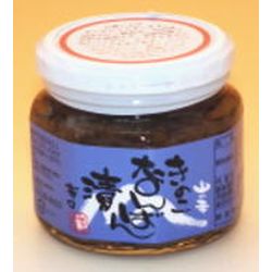 「なめこ」・「さもだし(ならたけ)」・「しめじ」を青唐辛子と醤油タレで漬込みんでいます。青唐辛子が多めに入っていますので辛口です。※「さもだし」とは津軽地方での「ならたけ」の呼び名です。昔、三文出しても食べたいと言われていた為この呼び名が付きました。