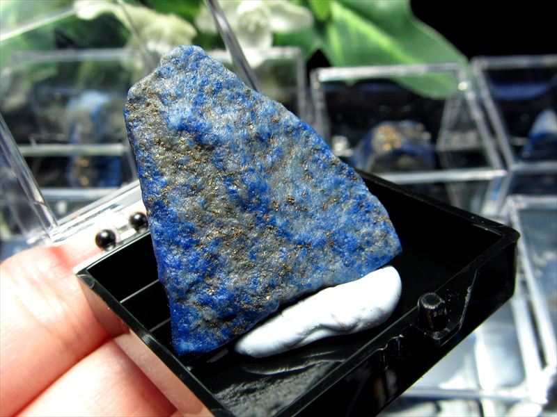 | ミニサイズの結晶原石が入荷しました! 約35×35×35mmのケースに入った小さな原石です 中には、ブラックライトを当てることで蛍光するラピスラズリもあります! ラピスラズリ 最強の幸運を引き寄せる世界最古のパワーストーン、 12月の誕生石として、超人気のラピスラズリ。 アフガン産ならではの目の醒めるような群青です。 ストーンキーワード 幸運を呼び寄せる。 第3の目をひらく。 お手頃価格なので、ちょっとしたプレゼントに最適です! まとめ買いして並べてディスプレイするのもオススメです! |