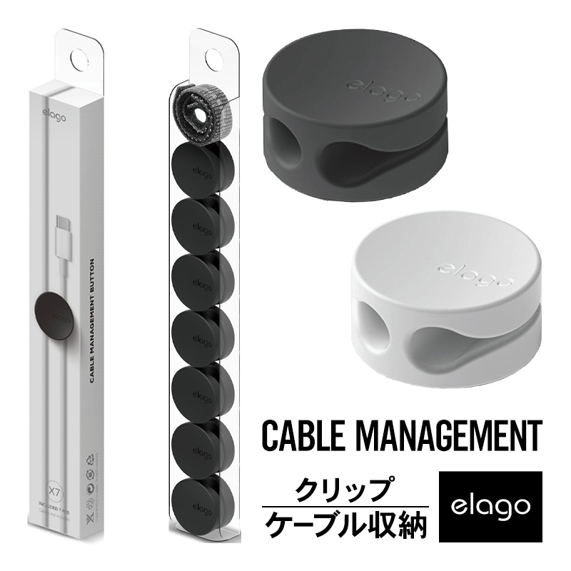 ケーブルクリップ ケーブルドロップ 収納ボタン 2ケーブル 同時収納 ケーブルクリップ 7個 ケーブルバイト ケーブル 収納 elago CABLE MANAGEMENT BUTTON