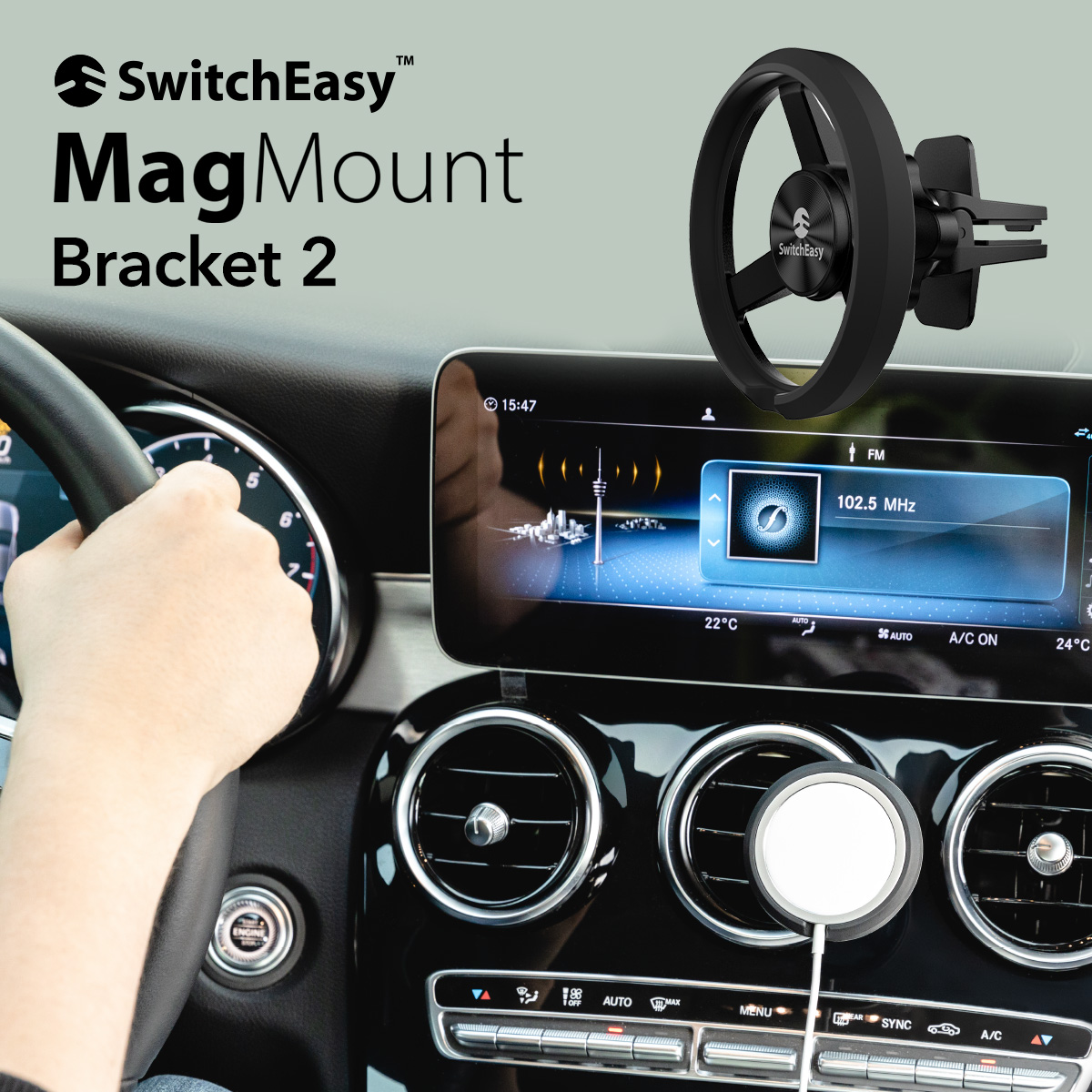 MagSafe 車載 スマホスタンド MagSafe 対応 マグネット 車 エアコン 丸型 クリップ式 スマホ 車載ホルダー MagSafe充電器 マグセーフ 対応 SwitchEasy MagMount