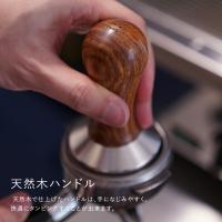 【天然木ハンドル】… 天然木で仕上げたハンドルは、手になじみやすく、快適にタンピングすることが出来ます。天然木ハンドルを回転させると分離することが出来るので、ベース部分のお手入れも簡単です。