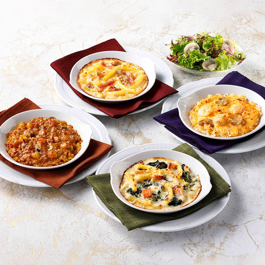 鮭とほうれん草のマカロニグラタン×1、シーフードドリアパプリカ風味×1、