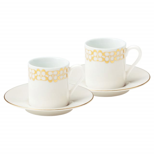 COACH(コーチ)ペアデミタスカップ&ソーサー ゴールド 送料無料 テーブルウェア テーブルウェア 結婚祝い 新築祝い ペアデミタスカップ ソーサー ゴールド