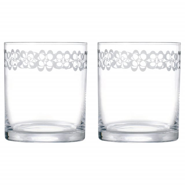 透明度の高いシンプルなデザインのロックグラス。グラスの縁にはコーチのアイコニックなシグネチャー柄をプリント。