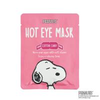 スヌーピーの耳をイメージした黒の耳掛けと、ピーナッツアートがかわいいホットアイマスク。