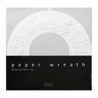 プロダクトデザイナーの伊藤千織さんデザインのペーパーリース。切り込みの曲線で作る立体は優雅で繊細なデザインながら、1枚の紙を折るだけで出来上がる優れた設計です。