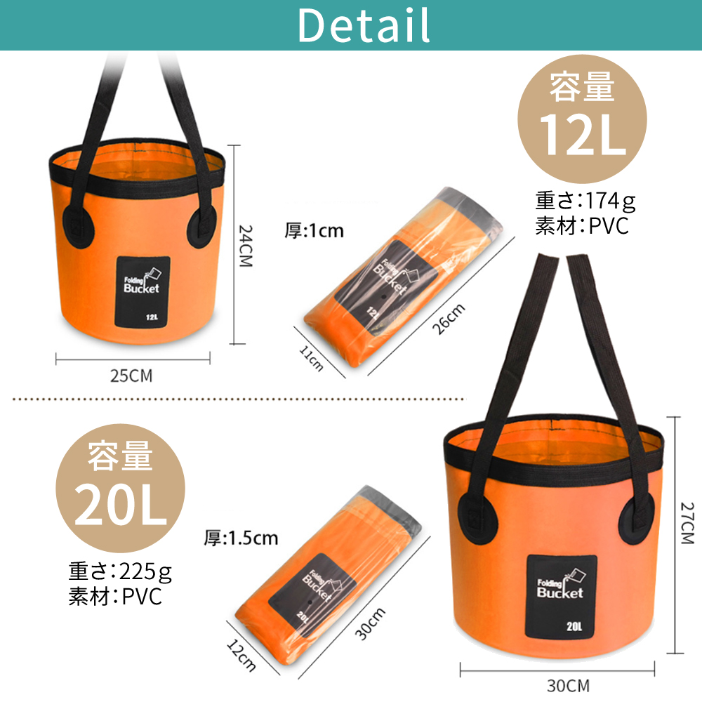 折りたたみ バケツ 12L 20L 折り畳みバケツ 洗車 釣り 釣 旅行 レジャー BBQ アウトドア キャンプ おりたたみ ソフト たためる PVC コンパクト 収納 掃除 道具