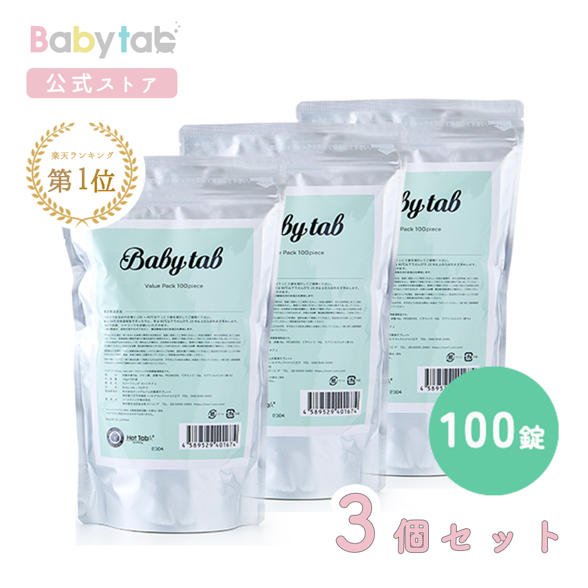 ベビタブ 入浴剤 Babytab 100錠 お得3個セット 赤ちゃん 無添加 無香料 塩素除去 オーガニック 温活 ホットタブ