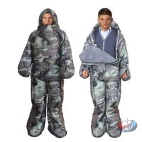 2. ブーツのジッパーを外し、スリーブのジッパーを外すと足と手が自由になり、寝袋を持ったまま地面を歩くことができます。