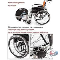 車イス 【手動車椅子】:障害者や脱胎の問題がある人に適して安全ベルト、薄い色の鋼製フレーム、補強した単十字、シートと背もたれは黒の洗えるポリプロピレン繊維の布地を採用して、背もたれに物袋を保管して、とても快適なプラスチックの手すり、ゴムのタイヤを持つ後輪、高強度の前PVC車輪、移動可能な手すりと脚の腰掛け。