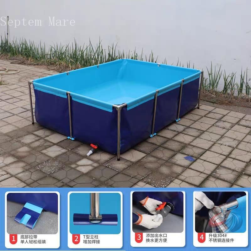 大型水槽 長方形プール 養殖用プール 折りたたみ 帆布生簀 フレーム付き ゾンチー 水を貯めやすく扱いやすい大きい魚のいる池向けキャンバス水槽