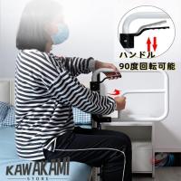 【足腰への負担を軽減】つらい立ち上がりをサポートしてくれるスタンドです。膝や腰の負担を助け、楽に立ち上がれます。ベッドの左右どちらにも取り付けできます。ハンドルは90度回転可能、使用しないときは場所を取らない。