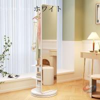 【4 in 1の機能】360度回転でき、収納スペース付きの全身ミラーです。これ一台で姿見鏡・ハンガーラック・収納スペース・デイスプレースペースの機能が使えます。