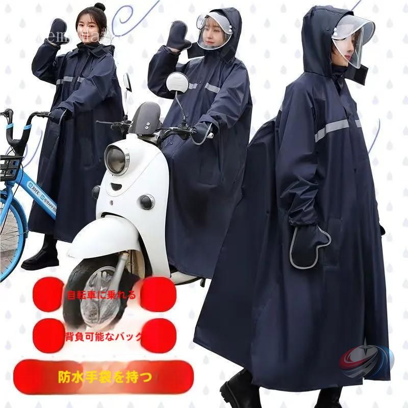 レインコート 自転車用 ポンチョ リュック対応 ロング丈 ゾンチー 厚手でも軽く、二重つばと反射テープ付きで通勤通学を快適にする人気雨具です