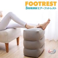 空気を入れるだけの簡単フットレスト。旅行などの長時間移動や、オフィス、リビングなど様々なシーンで大活躍するフットレスト。用途に応じて3段階の高さ調節が可能なフットレストです。収納ポーチが汚れ防止カバーになるので屋外でも安心してお使いいただけるフットレストです。