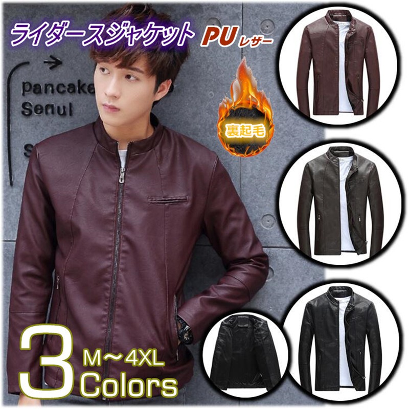 ライダースジャケット 裏起毛 裏ボア バイクジャケット メンズ 革ジャン 革ジャケット レザージャケット フルジップ スリムフィット 無地 お兄系 春秋 通勤 通学