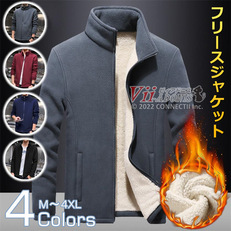 フリースジャケット メンズ 裏ボア ジャケット 暖かい ブルゾン アウター ジップアップジャケット アウトドアウェア 男女兼用 保温 軽量 防寒 防風