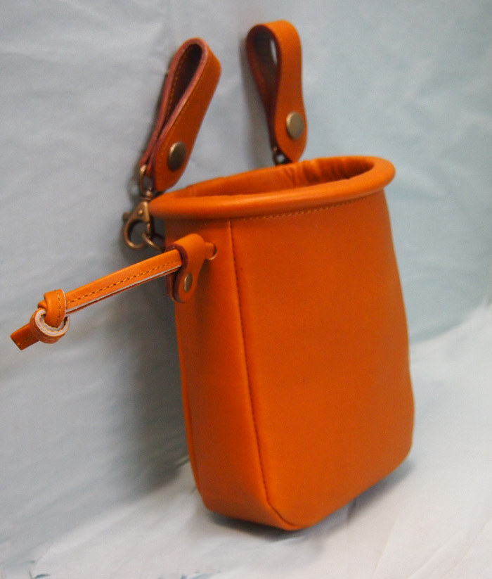 【ハンドメイド】グローブ革 チョークバッグ吊さげベルトループ付き ・ウエスト・オリジナル・牛革・手作り・オーダーメイド・カスタム