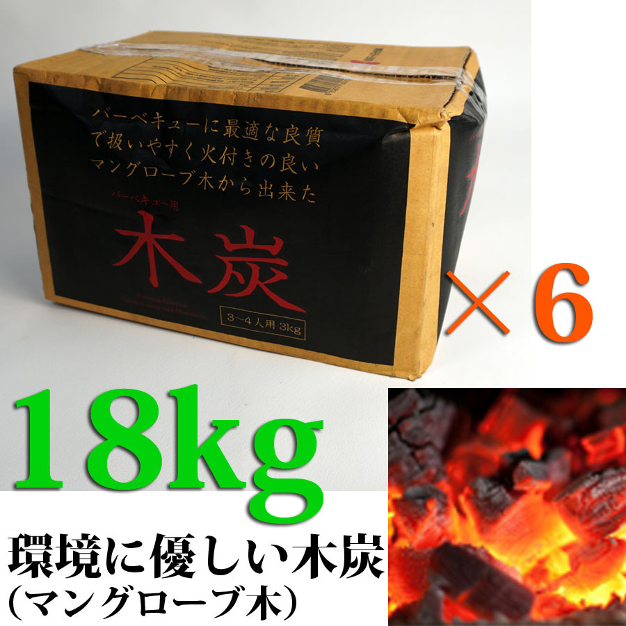 環境にやさしいマングローブ木炭 18kg(3kg×6箱) バーベキュー BBQ キャンプファイヤー 料理 暖炉 ストーブ 焚火 天然 木製【18キロ】