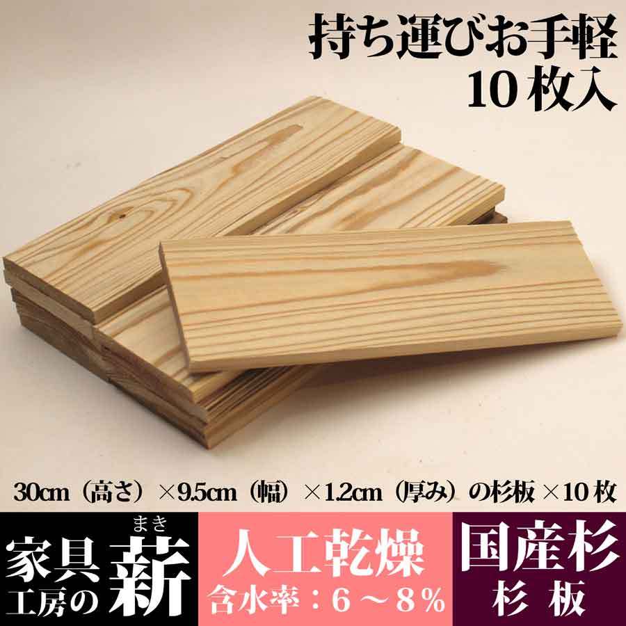 30cm(高さ)×9.5cm(幅)×1.2cm(厚み)の杉板×10枚