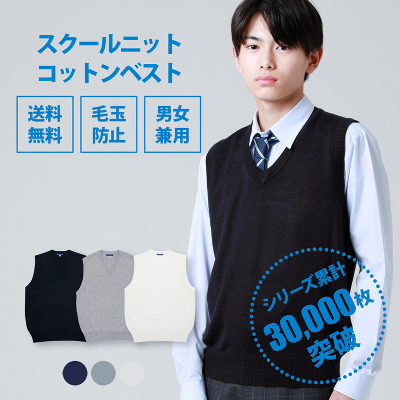 スクールベスト 男子 スクール ベスト 紺 制服ベスト 無地 綿 コットン CONOMi 高校 学生 中学 通学 ネイビー グレー ホワイト 白 スクール 学生服