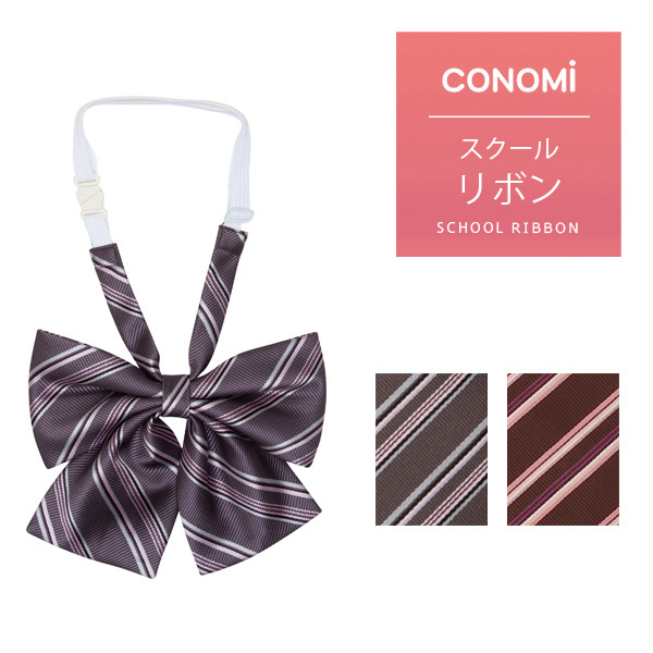 制服 リボン 女子高生 CONOMi スクールリボン 女子 高校生 学生服 中学 通学 スクール グレー ブラウン 茶 ピンク ブランド 人気 ストライプ ワンタッチ