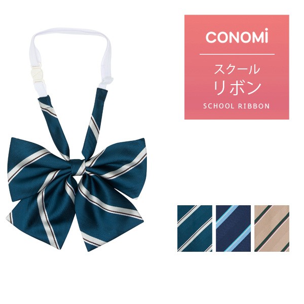 スクールリボン 女子高生 CONOMi 制服リボン 女子 高校生 学生服 中学 通学 スクール 青 緑 ブランド 人気 チェック ストライプ ワンタッチ