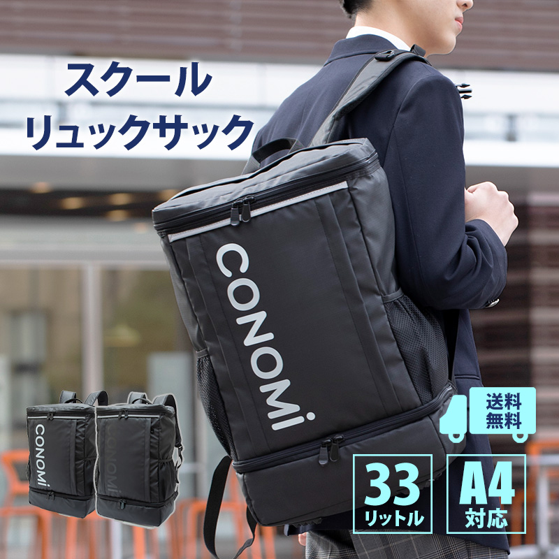 通学リュック 高校生 中学生 男子 女子 大容量 スクールリュック 全2色 CONOMi 高校生 通学 リュックサック 中学 学生 おしゃれ 大容量 33L ブラック 黒 学生服