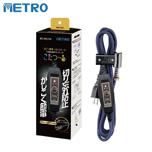こたつコード こたつヒーター2ピン専用 3m AC125V 7A [BC-2PLT(A)] 5時間自動切タイマー付 電源スイッチ メトロ電気 ユアサプライムス