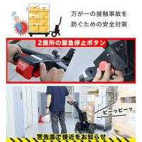 商品説明 : □最大1000kgまで1人で牽引が可能。重い台車も楽に運搬できる電動アシスト牽引車