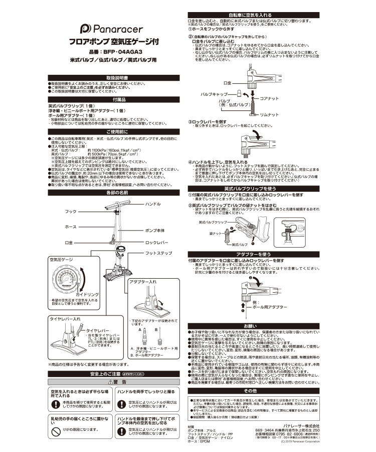 | Panaracer アルミ製フロアポンプ (空気圧ゲージ付き) BFP-04AGA3 |