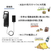 | ●電動アシスト自転車用バッテリーの利用シーンの幅を広げるUSB出力アダプター ●USB出力2ポート搭載で2台同時に給電が可能 ●16Ahバッテリーならスマートフォン(容量:約3,000mAh相当) 約20回の充電が可能 (モバイルバッテリーと同等の3.6V換算した場合、約112,000mAhに相当) ●非常用電源として防災ツールにも活用可能 ●屋内仕様(非防水) |