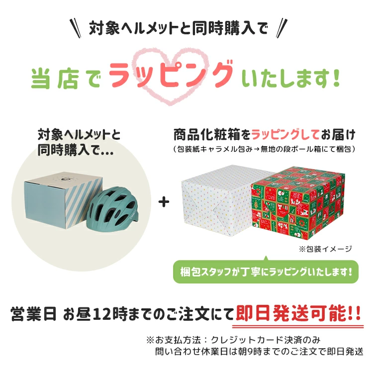 | 箱入りヘルメット限定 ラッピングサービス 対象ヘルメットと同時ご購入で 当店にて包装紙でラッピング 中身の見えない段ボール箱でお届けします。 WRAP-B002 |