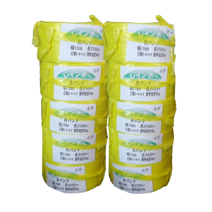 レインボーRバンド(イモバンド, ポリバンド) 黄 10巻入り 15mm巾x500m 20芯(6-4-4-6)